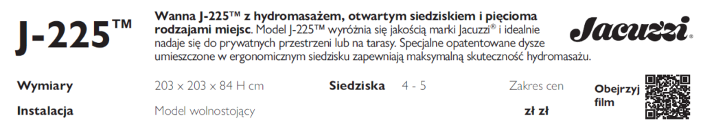 Seria J-200 wyposażona jest w różne rodzaje dysz, w tym rotacyjne oraz stałe, które umożliwiają precyzyjne kierowanie strumieniami wody w wybrane partie ciała. Dzięki technologii regulacji przepływu wody, użytkownicy mogą łatwo dostosować intensywność masażu, co pozwala na pełną personalizację doświadczenia.