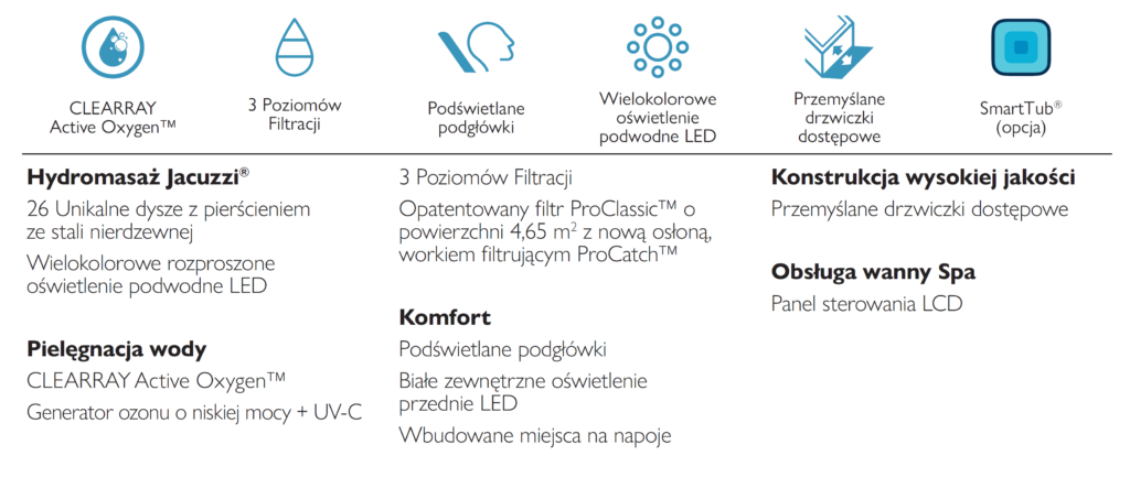 Siedziska zaprojektowane zgodnie z sylwetką ciała i zagłębione dysze umiejscowione tak, aby idealnie pasować do struktury mięśni człowieka zapewniają każdemu, niezależnie od budowy ciała, komfortowy hydromasaż na najwyższym poziomie.