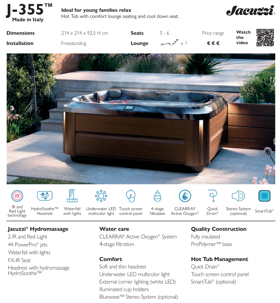 Modele Jacuzzi od J-332™ wyposażono w opatentowane siedzisko FX-IR, łączące hydromasaż z terapią podczerwienią i czerwonym światłem. Technologia ta skupia się na obszarze lędźwiowym, przynosząc ulgę w bólu i wspomagając regenerację tkanek. To innowacyjne rozwiązanie zapewnia głębokie odprężenie i korzyści terapeutyczne potwierdzone klinicznie.