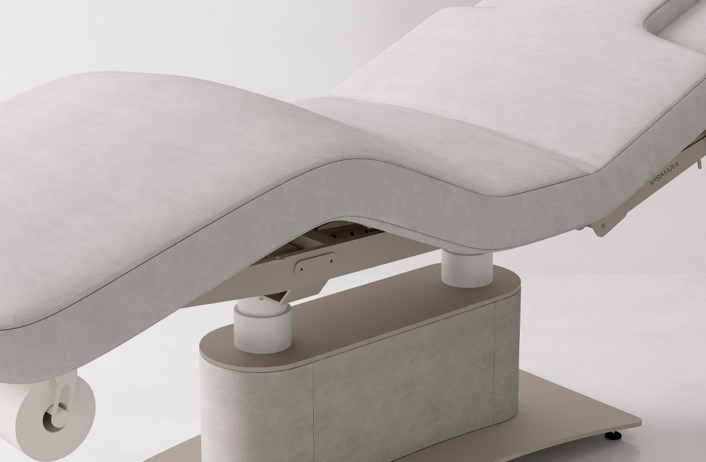 Lettino Arcus – elektryczne łóżko do masażu z podwójną kolumną, wyposażone w cztery silniki. Jest to wielofunkcyjne łóżko odpowiednie do każdego rodzaju zabiegów dzięki licznym regulacjom. Ruchy materaca są kontrolowane za pomocą wygodnego pilota. Konstrukcja jest w kolorze srebrnym/złotym. Podstawa i materac, wyposażone w otwór na twarz z odpowiednią zatyczką i uchwytem na rolkę, są dostępne w 5 wykończeniach skai premium.